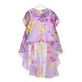 Блуза Elsy с нежным цветочным принтом из 100% полиэстера и хлопка – идеальный выбор для вашего маленькой принцессы! Благодаря нежной ткани и изысканному цветочному принту, блуза создает уют и комфорт. Качество от бренда из Румынии делает эту блузу отличным дополнением к гардеробу вашего ребенка. На фотографии видны разноцветные цветы, включая розовые тюльпаны, желтые нарциссы и фиолетовые ирисы, а также зеленые листья и бабочки. Блуза с V-образным вырезом горловины и рукавами-фонариками создает элегантный и стильный образ.