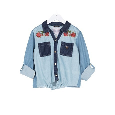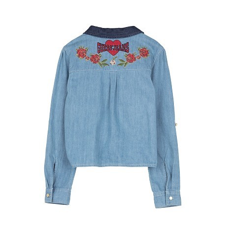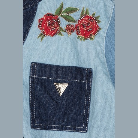 Блуза Guess – это идеальный выбор для девочек! Изготовленная из 100% хлопка, она украшена вышивкой красных роз и карманами из джинсовой ткани. Нежная джинсовая основа с яркими красными розами и зелеными листьями создает элегантный и в то же время уютный образ. На фотографии видны аккуратные карманы из джинса, золотые пуговицы и вышивка роз. Качество от бренда из Индии и внимание к деталям делают эту блузу отличным выбором для вашего ребенка!