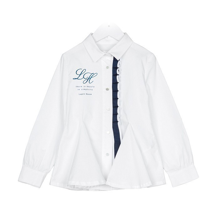 Белая блуза для девочек Lapin House – это идеальный выбор для стильных и комфортных образов! Изготовленная из 97% хлопка и 3% эластана, она обеспечивает мягкость и эластичность, что делает её идеальной для нежной кожи. Блуза украшена элегантным принтом с надписью Lh и длинными рукавами, которые идеально сидят и не сковывают движения. На фотографии видна аккуратная белая основа с синим принтом и длинные рукава с рюшами. Качество от бренда из Греции и внимание к деталям делают эту блузу отличным выбором для вашего ребенка!