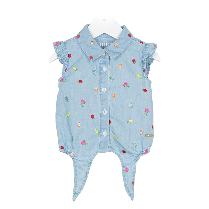 Блузка Guess – это идеальный выбор для маленьких модниц! Изготовленная из 100% хлопка, она украшена очаровательными вышивками фруктов и цветов на светло-голубом фоне. Нежная ткань с яркими деталями создает уютное и в то же время яркое настроение. На фотографиях видна аккуратная вышивка фруктов и цветов, а также удобная застежка на пуговицы. Качество от бренда Guess и внимание к деталям делают эту блузку отличным выбором для вашего ребенка!