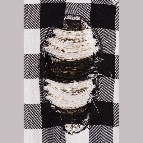 - 🎨 Дизайн: черно-белый клетчатый принт, рваные детали