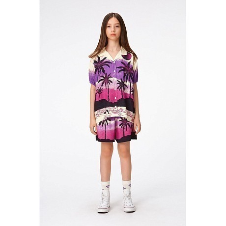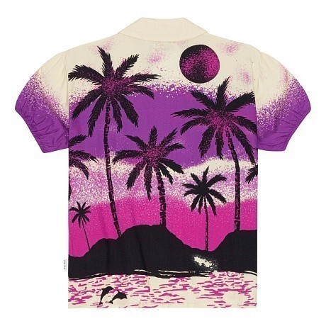 Блузка Molo – это идеальный выбор для девочек! Изготовленная из 100% вискозы, она украшена очаровательным принтом с пальмами и закатом. Яркие фиолетовые и розовые тона создают нежное и романтичное настроение. На фотографиях видны черные силуэты пальм, розовый закат и белые горизонтальные полосы, которые создают ощущение летнего пляжа. Качество от бренда из Дании и внимание к деталям делают эту блузку отличным выбором для вашего ребенка!