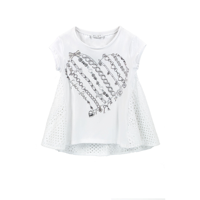Футболка Elsy – это идеальный выбор для маленьких модниц! Изготовленная из 97% хлопка и 3% эластана, она украшена очаровательным принтом сердца и браслетов. Футболка с круглым вырезом и короткими рукавами подойдет для девочек от 1 до 6 лет. На фотографии видно, как футболка смотрится на детях, а также детали, такие как вышивка и контрастные рукава. Качество ткани и внимание к деталям делают эту футболку отличным выбором для вашего ребенка!