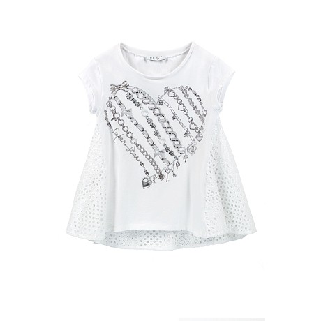 Футболка Elsy – это идеальный выбор для маленьких модниц! Изготовленная из 97% хлопка и 3% эластана, она украшена очаровательным принтом сердца и браслетов. Футболка с круглым вырезом и короткими рукавами подойдет для девочек от 1 до 6 лет. На фотографии видно, как футболка смотрится на детях, а также детали, такие как вышивка и контрастные рукава. Качество ткани и внимание к деталям делают эту футболку отличным выбором для вашего ребенка!