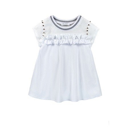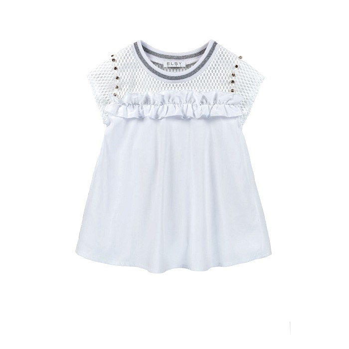Белый топ для девочки Elsy с сетчатыми рукавами и оборкой