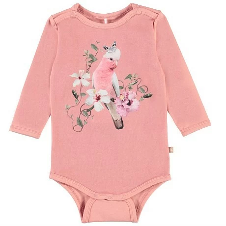 Розовое боди для девочки Molo с принтом птицы и цветов
