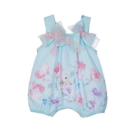 Голубой костюм тр. для девочки с цветочным принтом и кроликом