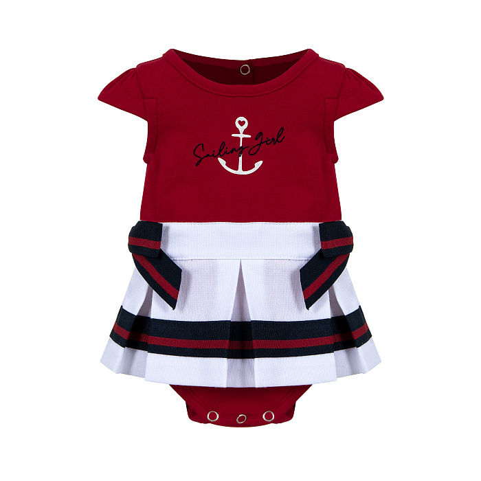 Песочник Lapin House – это идеальный выбор для маленьких морячек! Изготовленный из 76% хлопка, 22% тактеля и 2% лайкры, он украшен очаровательным принтом якоря и надписью Sailing Girl. Яркий красный цвет с белыми и черными полосами создает неповторимый морской стиль. На фотографии видна аккуратная белая окантовка по краю и мягкая текстура ткани. Качество от бренда из Греции и внимание к деталям делают эту модель отличным выбором для вашего ребенка!