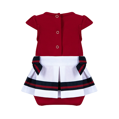 Песочник Lapin House – это идеальный выбор для маленьких морячек! Изготовленный из 76% хлопка, 22% тактеля и 2% лайкры, он украшен очаровательным принтом якоря и надписью Sailing Girl. Яркий красный цвет с белыми и черными полосами создает неповторимый морской стиль. На фотографии видна аккуратная белая окантовка по краю и мягкая текстура ткани. Качество от бренда из Греции и внимание к деталям делают эту модель отличным выбором для вашего ребенка!