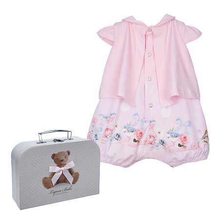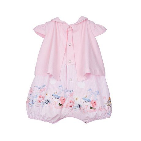 Полукомбинезон Lapin House – это идеальный выбор для маленьких принцесс! Изготовленный из 94% хлопка и 6% эластана, он украшен очаровательным цветочным принтом с изображением роз, лилий и птичек на нежно-розовом фоне. Крупные цветы и мелкие птички создают нежное и романтичное настроение. На фотографии видна аккуратная белая окантовка по краю и мягкая текстура ткани. Качество от бренда из Греции и внимание к деталям делают этот полукомбинезон отличным выбором для вашего ребенка!