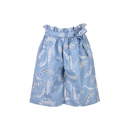Бриджи Elsy – это идеальный выбор для девочек! Изготовленные из 100% хлопка с подкладкой из 100% хлопка, они украшены изящной белой вышивкой в виде листьев и ягод на светло-голубом фоне. Нежная ткань и изысканный дизайн создают уют и комфорт для вашего ребенка. На фотографии видна аккуратная белая вышивка по всей длине бриджей и мягкая текстура ткани. Качество от итальянского бренда Elsy и внимание к деталям делают эти бриджи отличным выбором для вашего ребенка!