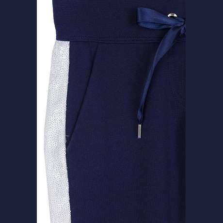 Брюки Elsy – это идеальный выбор для маленьких модниц! Изготовленные из комфорта 95% хлопка и 5% эластана, они идеально сидят благодаря эластичному поясу и удобным карманам. Белые полосы по бокам создают стильный контраст и делают брюки еще более привлекательными. На фотографии видна удобная эластичная резинка и мягкая текстура ткани. Качество от итальянского бренда и внимание к деталям делают эти брюки отличным выбором для вашего ребенка!