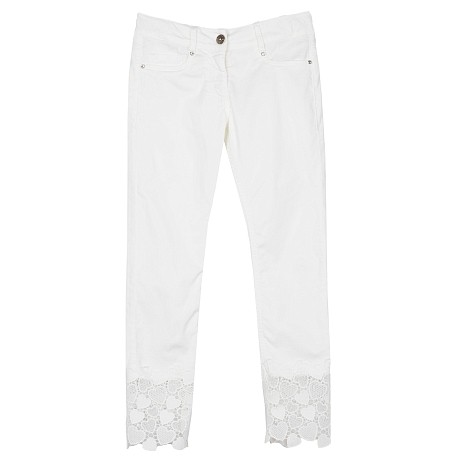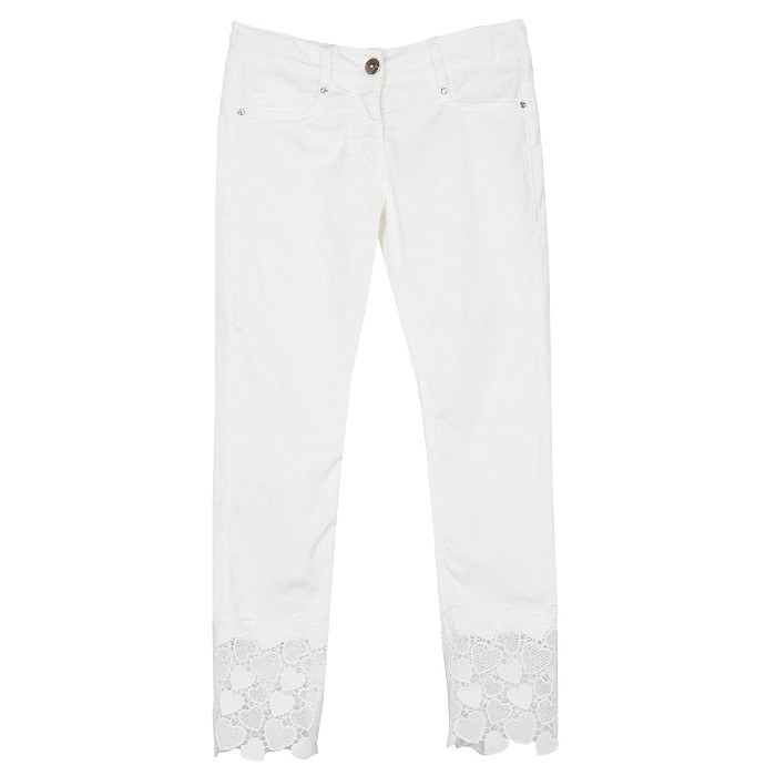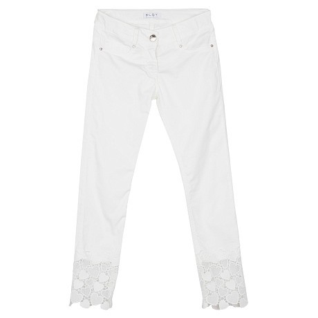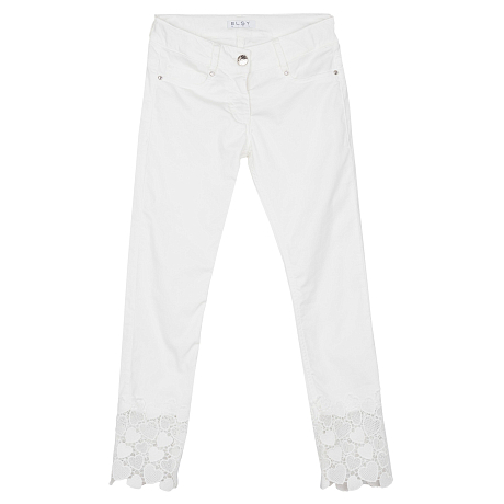 Белые брюки для девочки Elsy – это стильный и комфортный вариант для вашего ребенка! Изготовлены из высококачественного материала: 63% хлопок, 35% модал и 2% эластан, что делает их мягкими и гипоаллергенными. Нижняя часть брюк украшена изящным кружевом, что придает модели нежность и изысканность. Брюки идеально сидят благодаря эластичной резинке на талии. Качество от Китая и внимание к деталям делают эти брюки отличным выбором для вашего маленькой модницы!