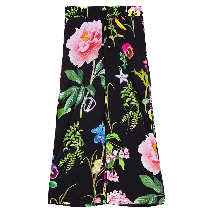 Брюки для девочек Elsy – это идеальный выбор для весны! Изготовленные из 100% полиэстера с подкладкой из 100% хлопка, они украшены изысканным цветочным принтом. На брюках видны большие розовые пионы, нежные лилии, яркие фиалки и зеленые листья на черном фоне. Качество от итальянского бренда Elsy и внимание к деталям делают эти брюки отличным выбором для вашего ребенка!