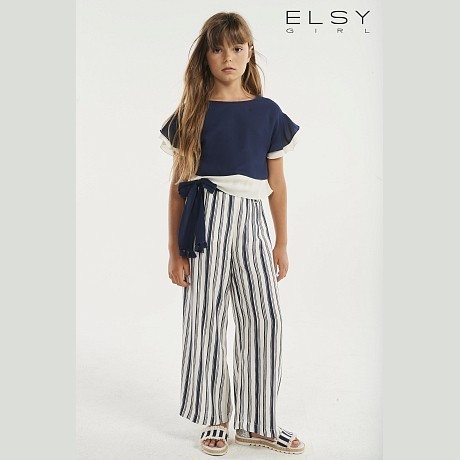 Брюки Elsy с элегантным принтом полоска и синим поясом – это идеальный выбор для стильных девочек! Изготовленные из 100% вискозы с отделкой 100% полиэстера и подкладкой 100% хлопка, они идеально подойдут для повседневной носки. Элегантный синий пояс с бантом добавляет брюкам нотку шарма и удобства. На фотографии видна аккуратная полоска, мягкая текстура ткани и эластичная резинка пояса. Качество от итальянского бренда Elsy и внимание к деталям делают эти брюки отличным выбором для вашего ребенка!