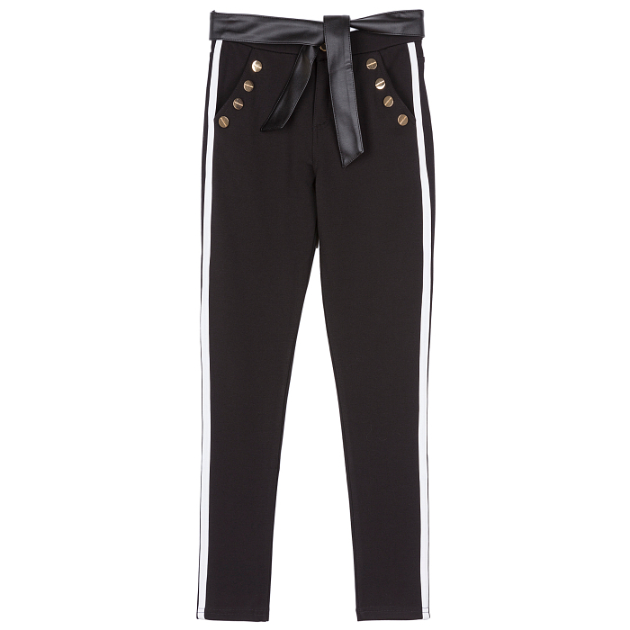 Брюки для девочки с белыми полосами и золотыми пуговицами