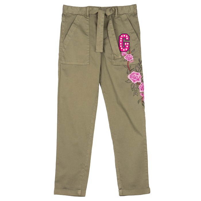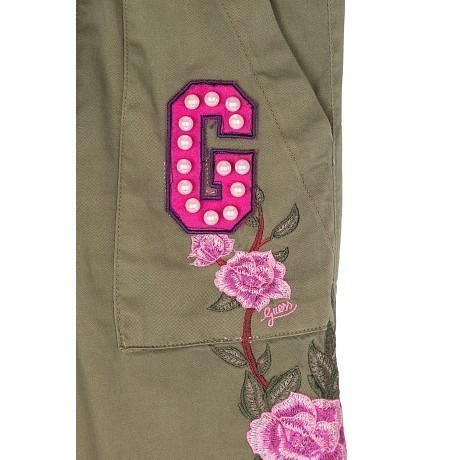 Брюки Guess – это идеальный выбор для стильных девочек! Изготовленные из 98% хлопка и 2% эластана, они украшены вышивкой буквы G и цветами. Благодаря эластичной талии и удобной посадке, эти брюки идеально сидят и комфортно носятся. На фотографии видна аккуратная вышивка буквы G и цветы, а также удобная эластичная резинка на талии. Качество от бренда из Индии и внимание к деталям делают эти брюки отличным выбором для вашего ребенка!