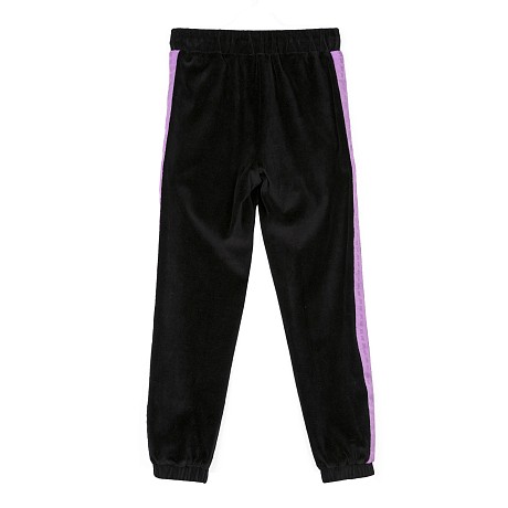 Брюки John Richmond – это стильный и комфортный выбор для маленьких модниц! Изготовленные из 100% полиэстера с подкладкой из хлопка, они украшены яркими фиолетовыми вставками по бокам и эластичной резинкой на талии. Нежная черная основа с фиолетовыми вставками создает модный и комфортный наряд. На фотографиях видна эластичная резинка на талии и мягкая текстура ткани. Качество от бренда из Италии и внимание к деталям делают эти брюки отличным выбором для вашего ребенка!