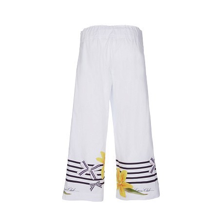 Белые брюки для девочки Lapin House – это идеальный выбор для стильных и комфортных образов! Изготовленные из 97% хлопка и 3% эластана, они украшены изящным принтом из желтых лилий и черных полосок на белом фоне. Белая основа с яркими цветочными и геометрическими элементами создает легкое и в то же время стильное настроение. На фотографиях видна аккуратная белая окантовка по краю и мягкая текстура ткани. Качество от бренда из Греции и внимание к деталям делают эти брюки отличным выбором для вашего ребенка!