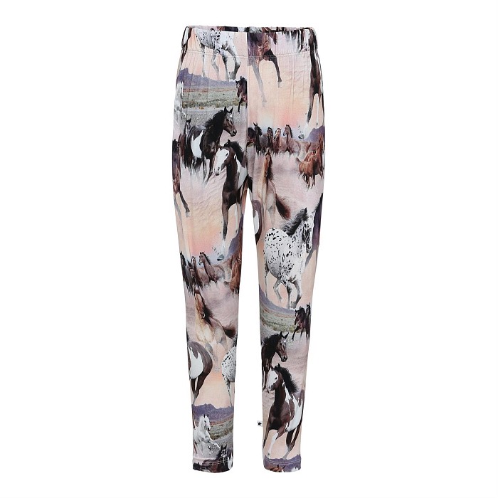 Брюки для девочек Molo с ярким принтом лошадей – это идеальный выбор для вашего ребенка! Изготовлены из комбинации вискозы и эластана (95% вискоза и 5% эластан), они обеспечивают комфортную посадку и отличную подвижность. Принт с изображением лошадей в разных позах и цветах создает яркий и стильный образ. На фотографиях видна эластичная резинка на талии и удобная посадка, которая идеально подходит для активного дня. Благодаря качественному материалу и стильному дизайну, эти брюки станут отличным дополнением к гардеробу вашего ребенка!