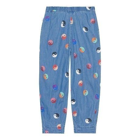 Брюки для девочек Molo – это идеальный выбор для вашего ребенка! Изготовленные из 100% хлопка, они украшены ярким принтом yin-yang в различных цветах. Брюки с эластичной резинкой на талии и удобной посадкой идеально подходят для девочек. На фотографиях видна аккуратная резинка по краю и мягкая текстура ткани. Качество от бренда из Дании делает эти брюки отличным выбором для вашего ребенка!