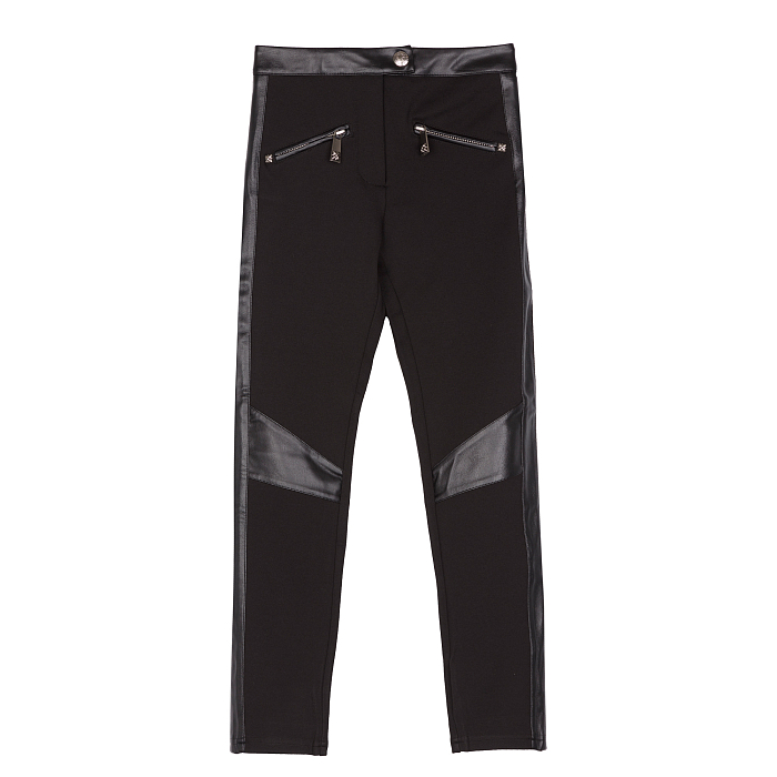 Брюки (леггинсы) для девочки John Richmond – это идеальный выбор для активных девочек! Изготовлены из комбинации вискозы, полиамида и эластана, они обеспечивают комфорт и свободу движений. Леггинсы с карманами на боковых швах и логотипом на задней части делают их стильными и удобными. На фотографиях видны эластичные вставки из полиуретана по бокам и удобные карманы с молниями. Качество от бренда John Richmond и внимание к деталям делают эти леггинсы отличным выбором для вашего ребенка!