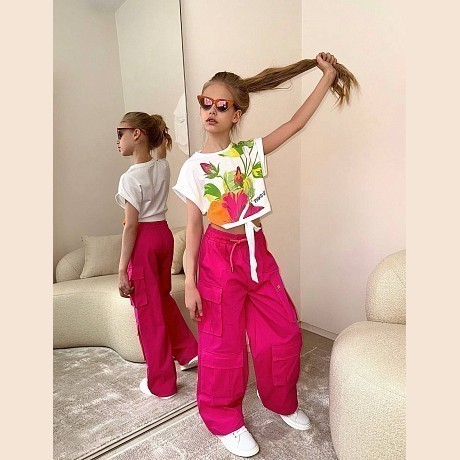 Розовые брюки Pinko Up – это идеальный выбор для стильных девочек! Изготовленные из комбинации 71% хлопка, 25% нейлона и 4% эластана, они обеспечивают отличную посадку и комфорт. Брюки выполнены в ярком розовом цвете, который подчеркивает нежность и изысканность. На фото видны удобная эластичная резинка на поясе, карманы по бокам и низу брюк, а также мягкая текстура ткани. Благодаря качеству и дизайну от итальянского бренда Pinko Up, эти брюки станут отличным дополнением к гардеробу вашего ребенка!