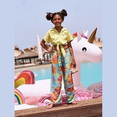 Брюки Pinko Up – это идеальный выбор для маленьких модниц! Изготовленные из вискозы, они украшены ярким цветочным принтом в виде крупных розовых, оранжевых и желтых цветов на фоне нежно-голубого цвета. Нежная ткань с яркими цветами создает яркий и веселый образ. На фотографиях видны аккуратные резинки на поясе и низу брюк, а также логотип бренда Pinko Up на задней части. Качество от итальянского бренда Pinko Up и внимание к деталям делают эти брюки отличным выбором для вашего ребенка!