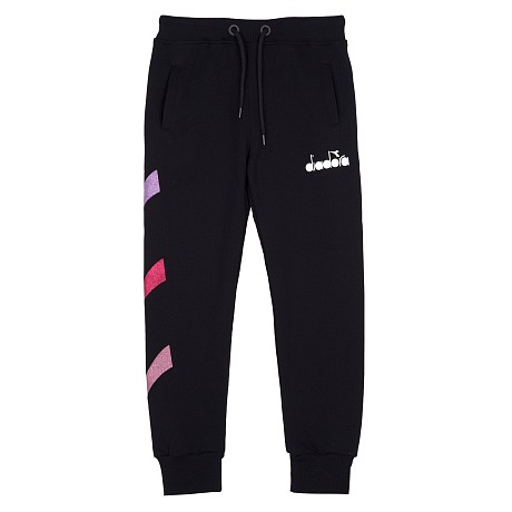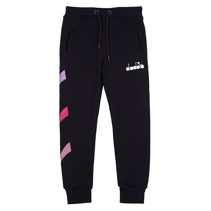 Тренажерные брюки Diadora – это идеальный выбор для девочек! Изготовленные из 100% хлопка, они оформлены яркими фиолетовыми полосами и логотипом Diadora на черном фоне. Благодаря эластичной резинке на талии и удобной посадке, брюки обеспечат комфорт и свободу движений. На фотографии видны удобные карманы снаружи и логотип Diadora на боку. Качество и стиль делают эти брюки отличным выбором для вашего ребенка!