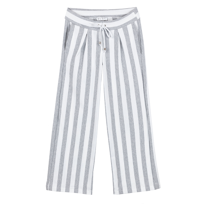 Брюки тр. для девочки Elsy – это идеальный выбор для вашего маленькой модницы! Изготовленные из 95% хлопка и 5% эластана, они обеспечивают идеальную посадку и комфорт. Благодаря эластичной резинке на поясе, брюки легко надевать и снимать, не сдавливая животик. Принт полоска в черно-белых тонах придает брюкам оригинальный и модный вид. На фотографиях видна аккуратная белая резинка на поясе и мягкая текстура ткани. Качество от итальянского бренда Elsy и внимание к деталям делают эти брюки отличным выбором для вашего ребенка!