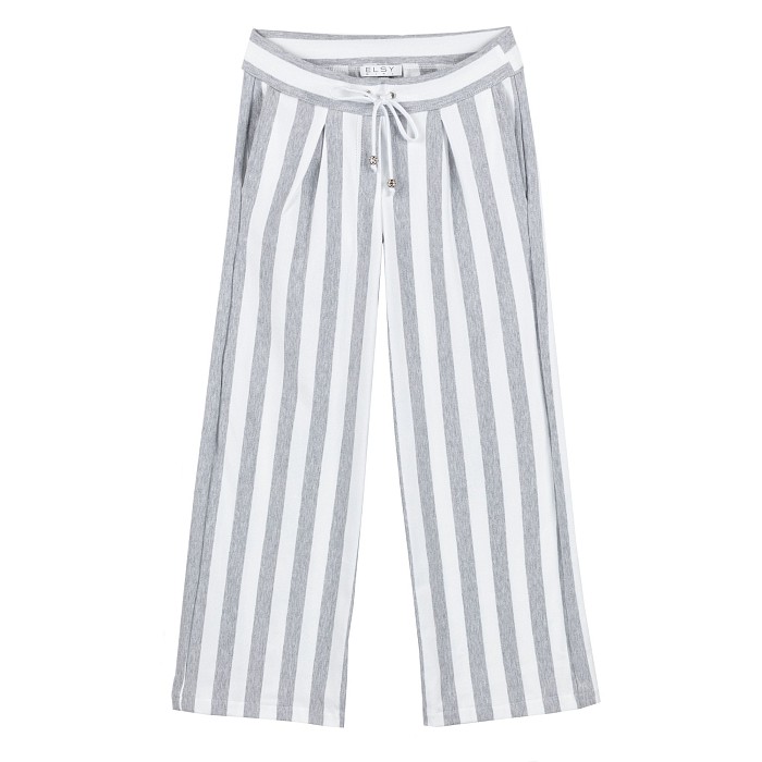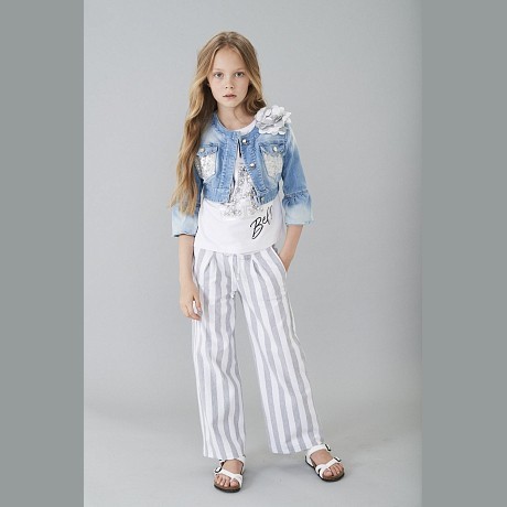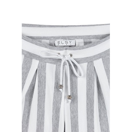 Брюки тр. для девочки Elsy – это идеальный выбор для вашего маленькой модницы! Изготовленные из 95% хлопка и 5% эластана, они обеспечивают идеальную посадку и комфорт. Благодаря эластичной резинке на поясе, брюки легко надевать и снимать, не сдавливая животик. Принт полоска в черно-белых тонах придает брюкам оригинальный и модный вид. На фотографиях видна аккуратная белая резинка на поясе и мягкая текстура ткани. Качество от итальянского бренда Elsy и внимание к деталям делают эти брюки отличным выбором для вашего ребенка!