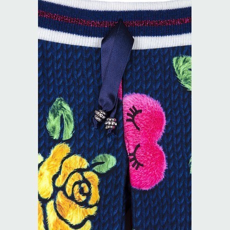 Брюки тр. для девочки Elsy – это идеальный выбор для вашего маленькой модницы! Изготовленные из 93% хлопка и 7% эластана, они украшены очаровательным цветочным принтом с крупными розами и зелеными листьями на темно-синем фоне. Нежная ткань с яркими цветами создает легкое и приятное настроение. На фотографиях видна аккуратная белая окантовка по краю и мягкое эластичное крашение. Качество от итальянского бренда Elsy и внимание к деталям делают эти брюки отличным выбором для вашего ребенка!