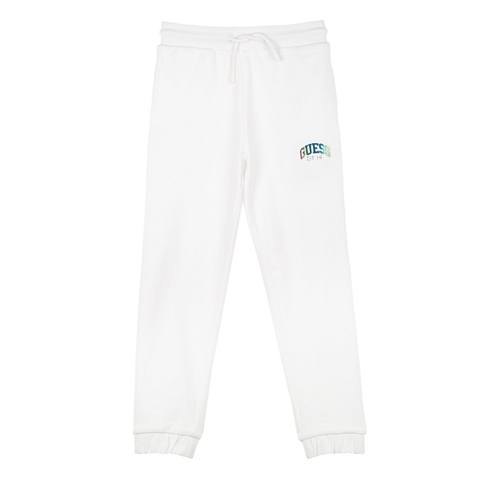 Белые брюки тр. для девочки Guess – это идеальный выбор для вашего маленькой модницы! Изготовленные из 100% хлопка, они украшены стильным логотипом Guess на боку. Нежная белая основа с ярким логотипом создает модный и удобный образ. На фотографиях видна удобная резинка на талии и мягкая текстура ткани. Качество от бренда из США и внимание к деталям делают эти брюки отличным выбором для вашего ребенка!