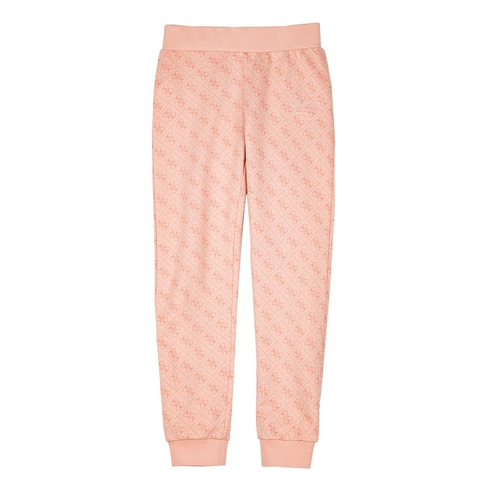Трикотажные брюки Guess – идеальный выбор для девочек! Изготовленные из 100% хлопка, они украшены мелким принтом логотипа Guess. Нежно-розовый цвет с контрастным принтом делает эти брюки не только удобными, но и модными. На фотографиях видна эластичная резинка по талии и мягкая текстура ткани. Качество от американского бренда Guess и внимание к деталям делают эти брюки отличным выбором для вашего ребенка!