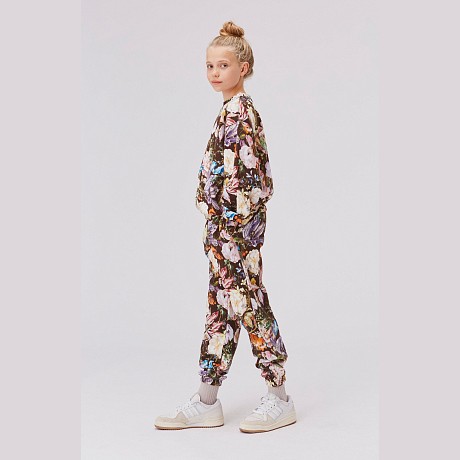 Треккинговые брюки Molo – это идеальный выбор для девочек! Изготовленные из 100% органического хлопка, они украшены изысканным цветочным принтом. На брюках видны разноцветные цветы на темном фоне, создавая нежный и романтичный образ. Брюки с эластичной резинкой по низу и удобной посадкой обеспечивают комфорт и свободу движений. Качество от бренда из Дании делает эти брюки отличным выбором для вашего ребенка!