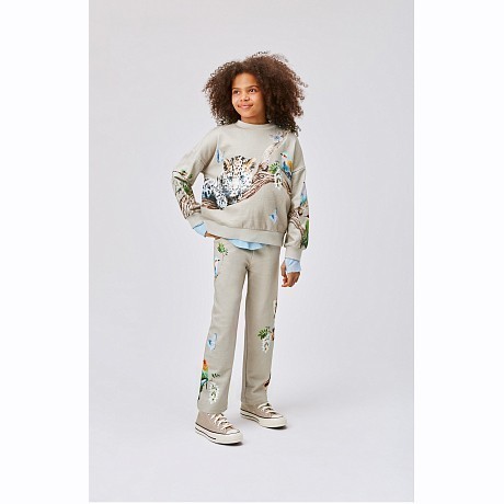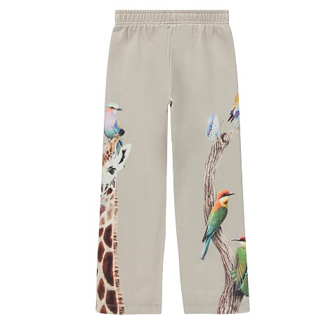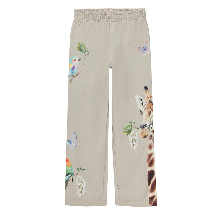 Брюки тр. для девочки Molo – это идеальный выбор для маленьких модниц! Изготовленные из 100% органического хлопка, они украшены очаровательным принтом с жирафом и птицами. Нежная ткань с яркими деталями создает игривое и в то же время уютное настроение. На фотографиях видна аккуратная эластичная резинка по талии и мягкая текстура ткани. Качество от бренда из Дании и внимание к деталям делают эти брюки отличным выбором для вашего ребенка!
