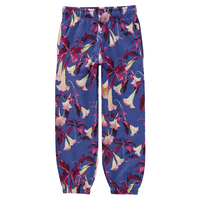 Трек брюки Molo – это идеальный выбор для девочек! Изготовленные из 100% натурального хлопка, они украшены очаровательным цветочным принтом с розовыми и желтыми цветами на синем фоне. Нежная ткань с ярким принтом создает уютное и стильное настроение. На фотографиях видна эластичная резинка по низу брюк и удобная посадка. Качество от бренда из Дании и внимание к деталям делают эти трек брюки отличным выбором для вашего ребенка!