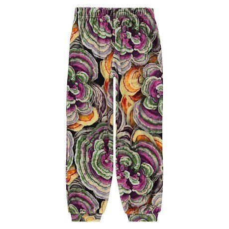 Треккинговые брюки для девочек Molo – это идеальный выбор для активных девочек! Изготовленные из 80% хлопка и 20% полиэстера, они украшены ярким цветочным принтом в виде крупных, разноцветных роз. Брюки с эластичной резинкой на талии и удобной посадкой идеально подходят для девочек любого возраста. На фотографиях видны яркие розы с зелеными листьями на черном фоне, а также удобная эластичная резинка на талии и мягкая текстура ткани. Качество от бренда из Дании и внимание к деталям делают эти брюки отличным выбором для вашего ребенка!