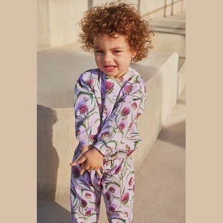 Брюки тр. для девочки Molo – это идеальный выбор для стильных и комфортных прогулок! Изготовленные из 100% натурального хлопка, они украшены очаровательными цветочными принтами на светло-розовом фоне. Красивые розовые и фиолетовые цветы с зелеными листьями создают нежный и в то же время яркий образ. На фотографиях видна эластичная резинка на поясе и мягкая текстура ткани. Качество от датского бренда и внимание к деталям делают эти брюки отличным выбором для вашего девочки!