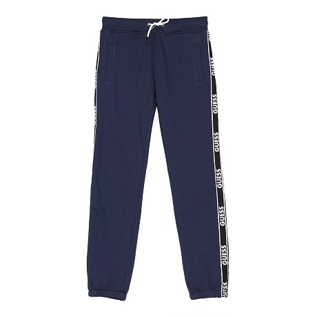 Трикотажные брюки Guess – идеальный выбор для мальчиков! Изготовленные из 100% хлопка, они оформлены логотипом Guess на боковых полосах, что делает их стильными и узнаваемыми. Брюки с удобной посадкой и эластичной резинкой на талии обеспечат комфорт и свободу движений. На фотографиях видны удобные карманы спереди и удобная регулируемая резинка на поясе. Качество от бренда Guess и внимание к деталям делают эти брюки отличным выбором для вашего ребенка!