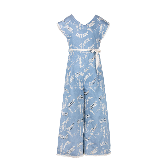 Комбинезон Elsy – это идеальный выбор для девочек! Изготовленный из 100% хлопка с подкладкой из того же материала, он украшен нежным цветочным принтом и белым поясом. Нежно-голубой фон с белыми цветами и листьями создает романтичное и уютное настроение. На фотографии видна аккуратная белая лента пояса и мягкость ткани. Качество от бренда из Италии и внимание к деталям делают этот комбинезон отличным выбором для вашего малыша!