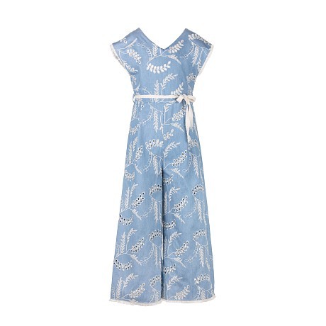 Комбинезон Elsy – это идеальный выбор для девочек! Изготовленный из 100% хлопка с подкладкой из того же материала, он украшен нежным цветочным принтом и белым поясом. Нежно-голубой фон с белыми цветами и листьями создает романтичное и уютное настроение. На фотографии видна аккуратная белая лента пояса и мягкость ткани. Качество от бренда из Италии и внимание к деталям делают этот комбинезон отличным выбором для вашего малыша!