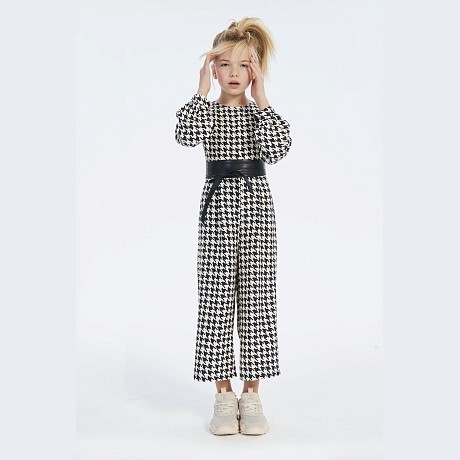 Комбинезон Elsy – идеальный выбор для маленьких модниц! Изготовленный из 100% вискозы, он украшен элегантным принтом в клетку и дополнен кожаным поясом. Классический черно-белый принт в клетку создает стильный и модный образ, а кожаный пояс подчеркивает фигуру. На фотографиях видна аккуратная кожаная лента пояса и элегантный силуэт комбинезона. Качество от бренда из Италии и внимание к деталям делают этот комплект отличным выбором для вашего ребенка!