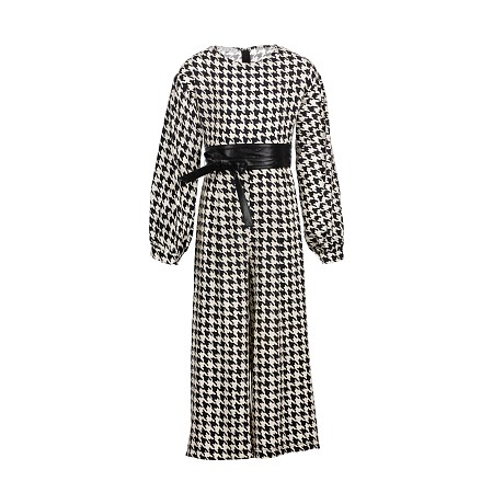 Комбинезон для девочек с принтом в клетку и кожаным поясом