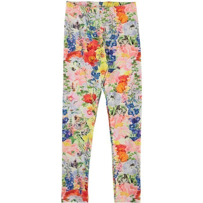 Легинсы Molo – это идеальный выбор для девочек! Изготовленные из 95% органического хлопка и 5% эластана, они украшены ярким цветочным принтом с животными. На фотографии видны разноцветные цветы, бабочки, кошки и леопарды на белом фоне. Легинсы с эластичной резинкой на талии и удобной посадкой идеально сидят и комфортно для ребенка. Качество от бренда из Дании и внимание к деталям делают эти легинсы отличным выбором для вашего девочки!