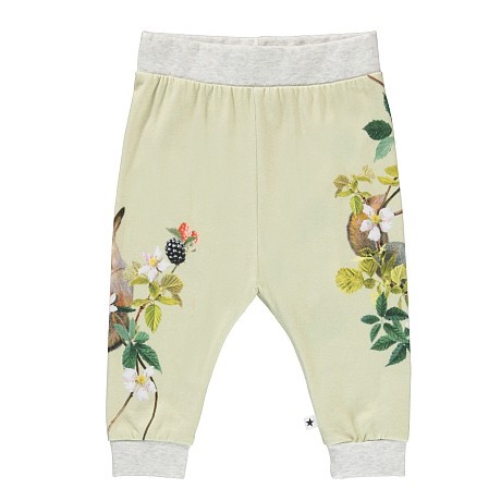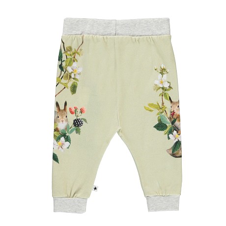 Штанишки тр. для девочки Molo – это идеальный выбор для маленьких модниц! Изготовленные из 95% хлопка органического и 5% эластана, они украшены очаровательными изображениями животных и ягод на светло-зеленом фоне. Мягкая ткань и эластичный пояс создают комфорт и удобство. На фотографиях видны детали: белые цветы, ягоды, зеленые листья и животные, такие как кролик и зайчик. Качество от бренда из Дании и внимание к деталям делают эти штанишки отличным выбором для вашего ребенка!