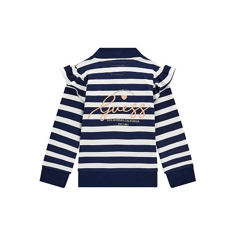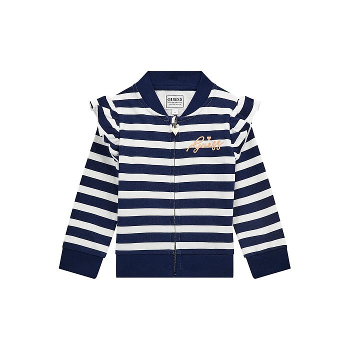 Джемпер Guess – идеальный выбор для девочек 4-6 лет! Изготовлен из 100% хлопка, он украшен стильным принтом с логотипом Guess. Темно-синий цвет подчеркивает модный и элегантный стиль. На фотографиях видна аккуратная белая контрастная окантовка по краю и мягкая текстура ткани. Качество от бренда США делает этот джемпер отличным выбором для вашего ребенка!