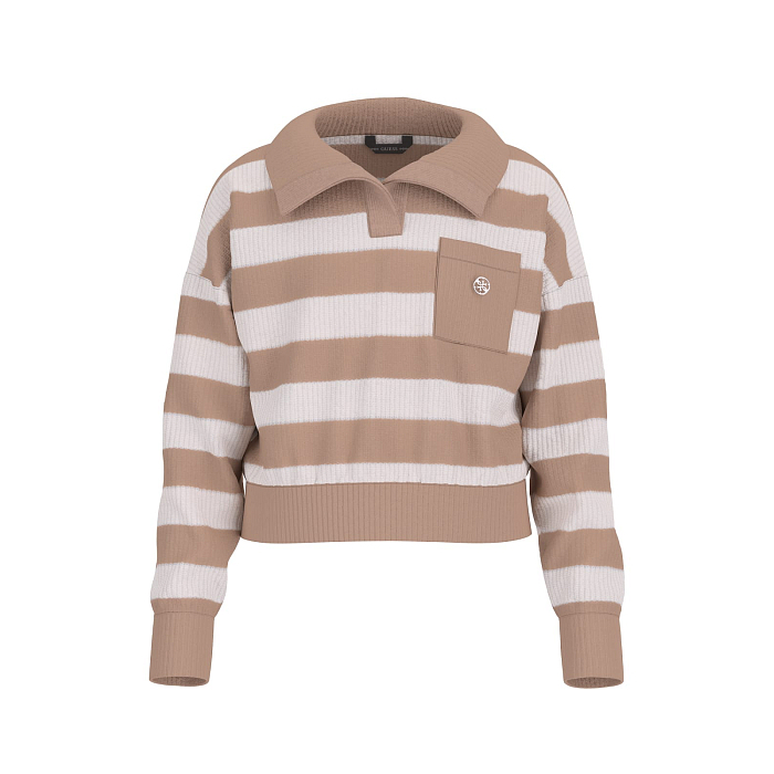 Джемпер Guess для девочек – это идеальный выбор для стильных и модных девочек! Изготовленный из 44% вискозы, 28% полиамида, 27% полиэстера и 1% эластана/спандекса, он обеспечивает комфорт и эластичность. Джемпер украшен белыми полосами на светло-коричневом фоне, что делает его стильным и современным. На фотографиях видна аккуратная белая полоса посередине, а также светло-коричневая окантовка по краю. Качество от американского бренда Guess и внимание к деталям делают этот джемпер отличным выбором для вашего ребенка!