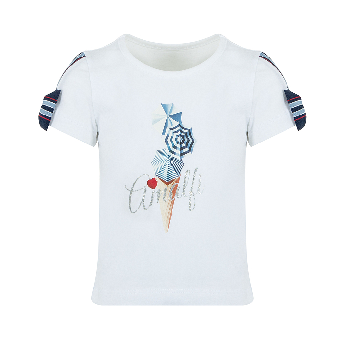 Джемпер Lapin House – это идеальный выбор для девочек! Изготовленный из 94% хлопка и 6% лайкры, он украшен очаровательным принтом зонтиков и надписью Амальфи. Белая основа с яркими зонтиками и надписью создает легкое и в то же время стильное настроение. На фотографиях видна аккуратная белая основа с яркими зонтиками и надписью Амальфи. Качество от бренда из Греции и внимание к деталям делают этот джемпер отличным выбором для вашего ребенка!