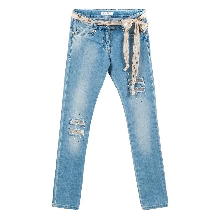 Брюки Elsy – это идеальный выбор для стильных девочек! Изготовленные из 77.3% хлопка, 20.5% полиэстера и 2.2% эластана, они украшены перламутровым принтом и джинсовыми потертостями. Благодаря эластичной посадке и удобной застежке, эти брюки идеально сидят и комфортно сидят на теле. На фотографии видна аккуратная отделка пояса перламутровой лентой и нежные джинсовые потертости. Качество от бренда из Китая и внимание к деталям делают эти брюки отличным выбором для вашего ребенка!